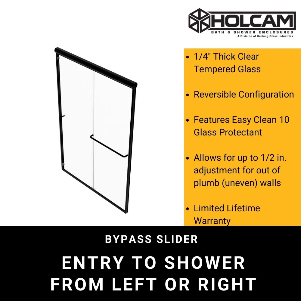 Combine style and utility with the Distinctive bypass sliding shower door in clear glass. The bypassing feature allows both shower panels to glide effortlessly from side to side. The sturdy, Euro-style towel bar provides durable towel storage, and the convenient knob pull allows easy access without the bulk of a traditional handle. The EasyClean 10-year glass coating is water-repellent and keeps glass free of water spots, making clean up quick and easy. Choose the best of elegance and function with the Distinctive sliding shower door.